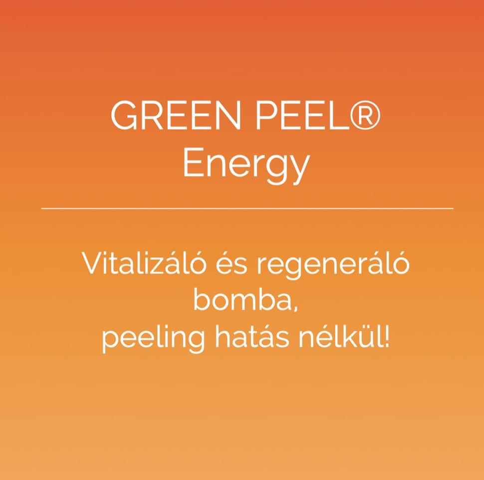 Természetes gyógynövényeket tartalmazó kezelés mely energiával látja el a bőrt. Serkenti az arcbőr vérkeringését és anyagcsere-folyamatait, ezáltal természetes úton javítja annak szerkezetét, hámoldó hatás nélkül. A GREEN PEEL® ENERGY kezelés a sejtmegújuláshoz szükséges természetes energiával látja el a bőrt. Csökkenti a korral járó problémákat, tüneteket, halványítja a hegeket, pigmentfoltokat és jótékonyan hat a zsíros, pattanásos bőrökre is. Harmóniába hozza a bőrt, láthatóan javítja összképét. Az optimális hatásért érdemes évente többször is megismételni a kezelést.