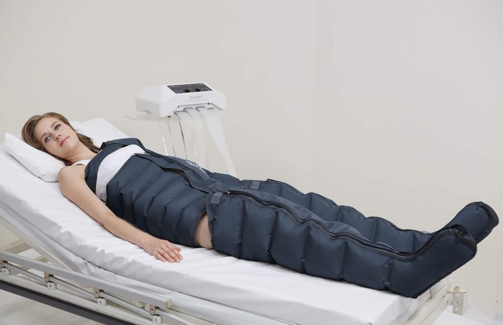 A gépi kompressziós eljárás lényege, hogy a páciens végtagjaira illetve testére speciálisan kialakított, légkamrákból álló kezelő egységeket, applikátorokat helyezünk fel. Az applikátorok szabályozottan vezérelt, egymás után felfúvódó légkamrái egy computer által irányított, folyamatosan váltakozó hullámmasszázs effektust idéznek elő. Ez hihetetlenül erőteljes, pozitív hatást gyakorol mind a nyirok- mind a vérkeringés élénkítésére.